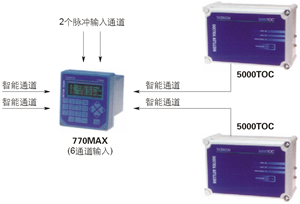 ● 两个5000TOC传感器连接至770MAX, 另外4个通道可连接其他传感器